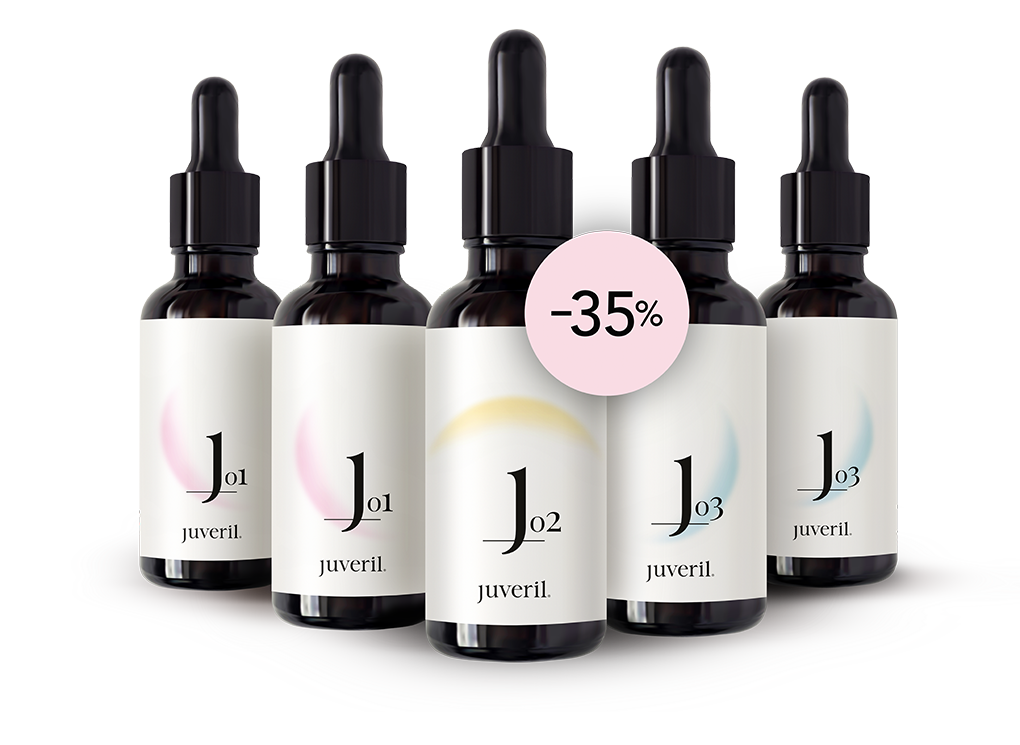 Chytré bylinné kapky juveril® J01, J02 a J03 jako základní řada jsou zaměřeny na celkovou očistu organismu a základní naformátování správných a přirozených životních funkcí. K jejich jedinečným účinkům patří: vyčištění cév, podpora správné krvetvorby, tvorba kvalitních červených krvinek dobře zásobujících organismus kyslíkem a udržování mírně zásaditého prostředí v těle. V neposlední řadě je jejich výjimečnou schopností výrazné oslabení patogenních mikroorganismů a zviditelnění nemocných a či jinak poškozených buněk imunitnímu systému.